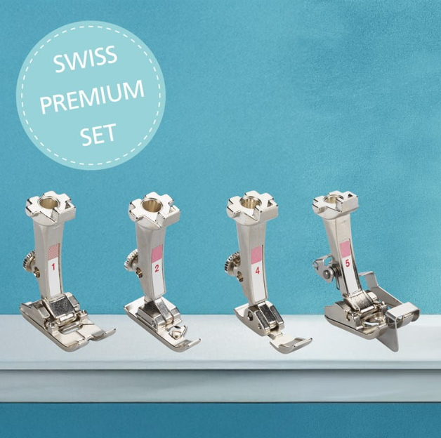 Beim Swiss Premium Set erhalten Sie zu Ihrer BERNINA 335 4 robuste BERNINA Nähfüsse für Präzision und Stabilität.